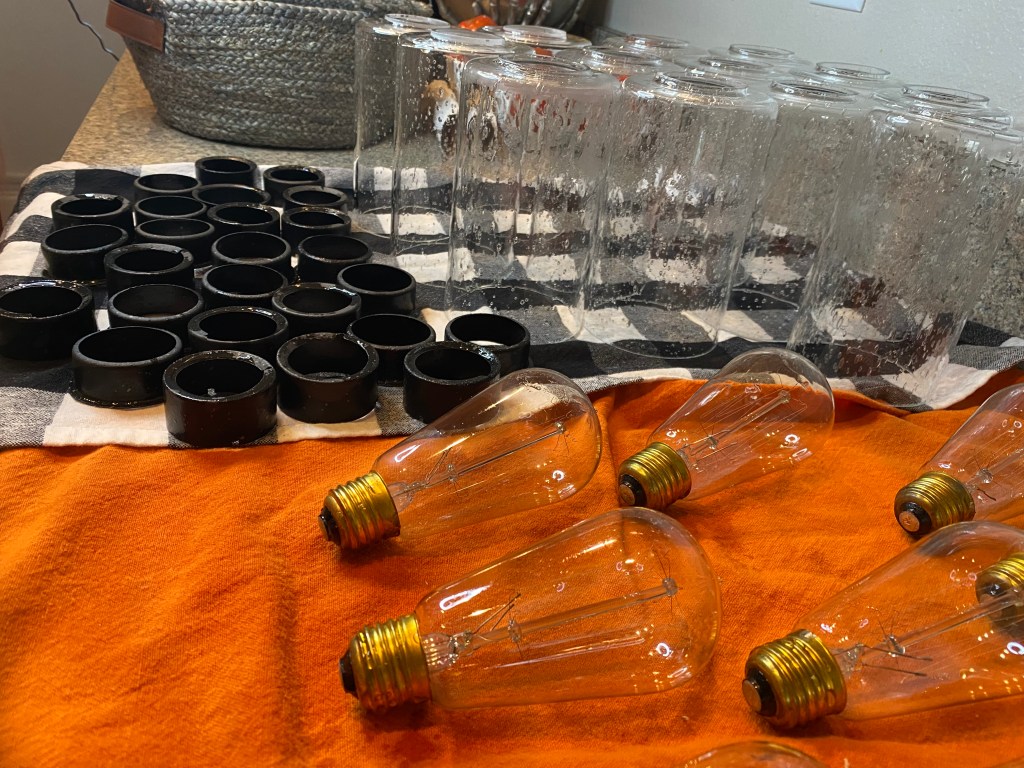 I fill the sink with HOT water and a tiny bit of dawn dish soap so that it looks almost like a bubble bath! Carefully put the socket rings and glass shades into the hot water to soak for just a few minutes.
