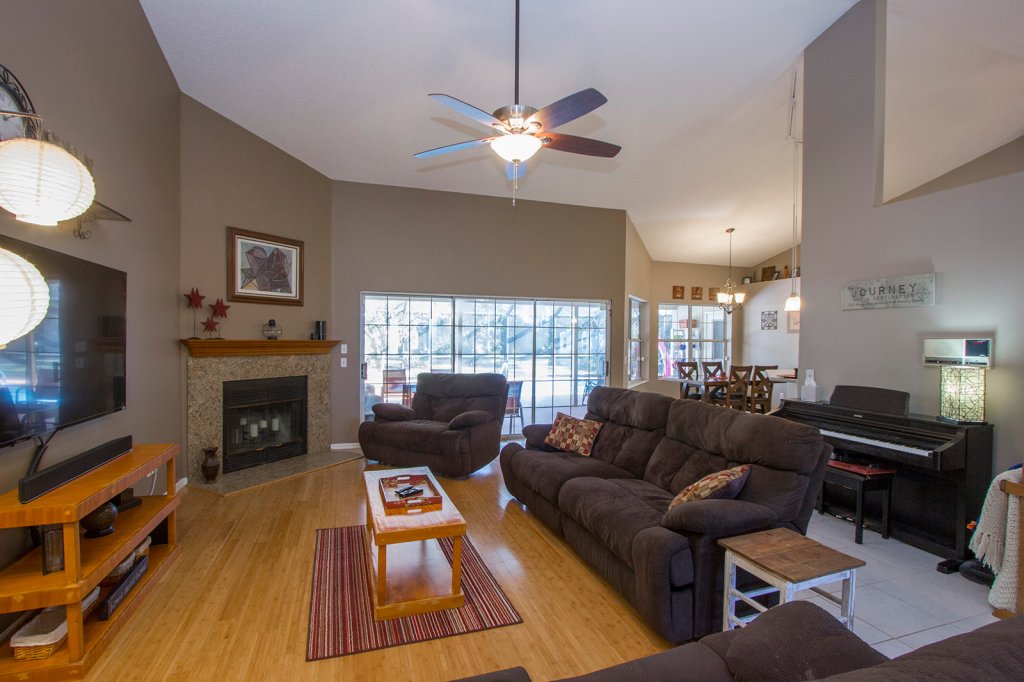 The spacious living Room presents vaulted ceilings, a fireplace (for the stockings) and triple sliding glass doors to let in ALL THE NATURAL LIGHT.