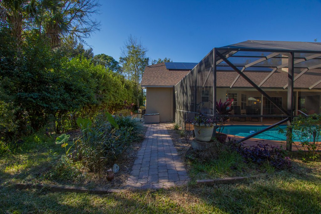 Your outdoor oasis awaits with in-ground electric heated screened swimming pool. Lots of covered lanai space for outdoor dinners. This oversized private backyard has the perfect amount of shade and privacy. Walk down to the DOCK + fresh water canal frontage to throw in a line or take the kayaks out for a bit.