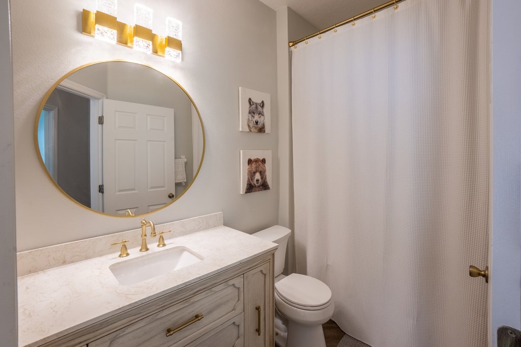 There are 2 more bedrooms and a lovely bathroom with updated sink and light fixture.