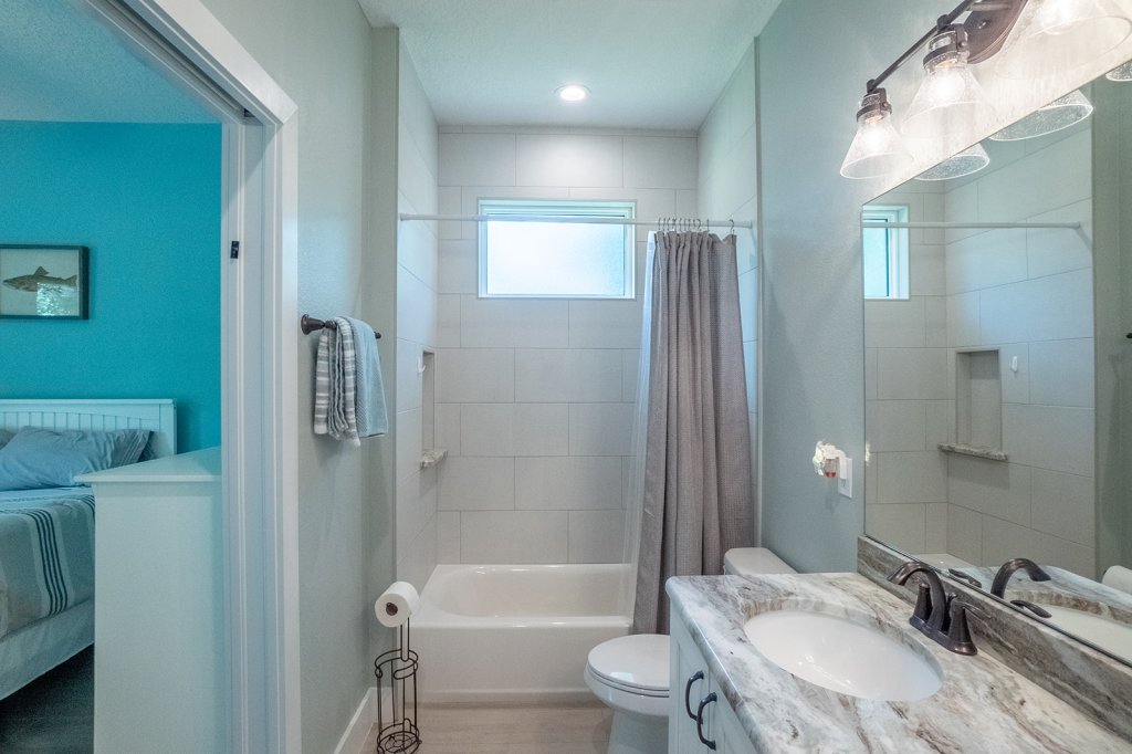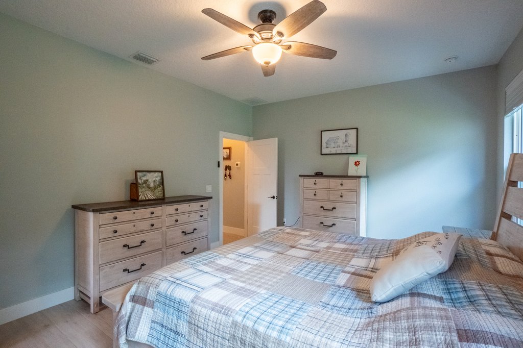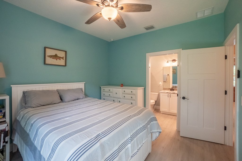 The guest bedroom is designed with convenience in mind, featuring its own walk-in closet and a private entrance to the guest bathroom. This thoughtful design ensures that your guests enjoy privacy and comfort during their stay.