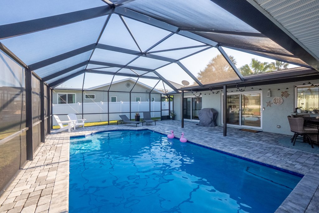 Recent upgrades ensure peace of mind, including new storm windows (2021) and a roof (2020), so you can move in worry-free. But the true highlight? The brand-new heated saltwater pool and screened lanai (2023)—your private oasis to unwind, soak up the Florida sunshine, and enjoy breathtaking canal views.